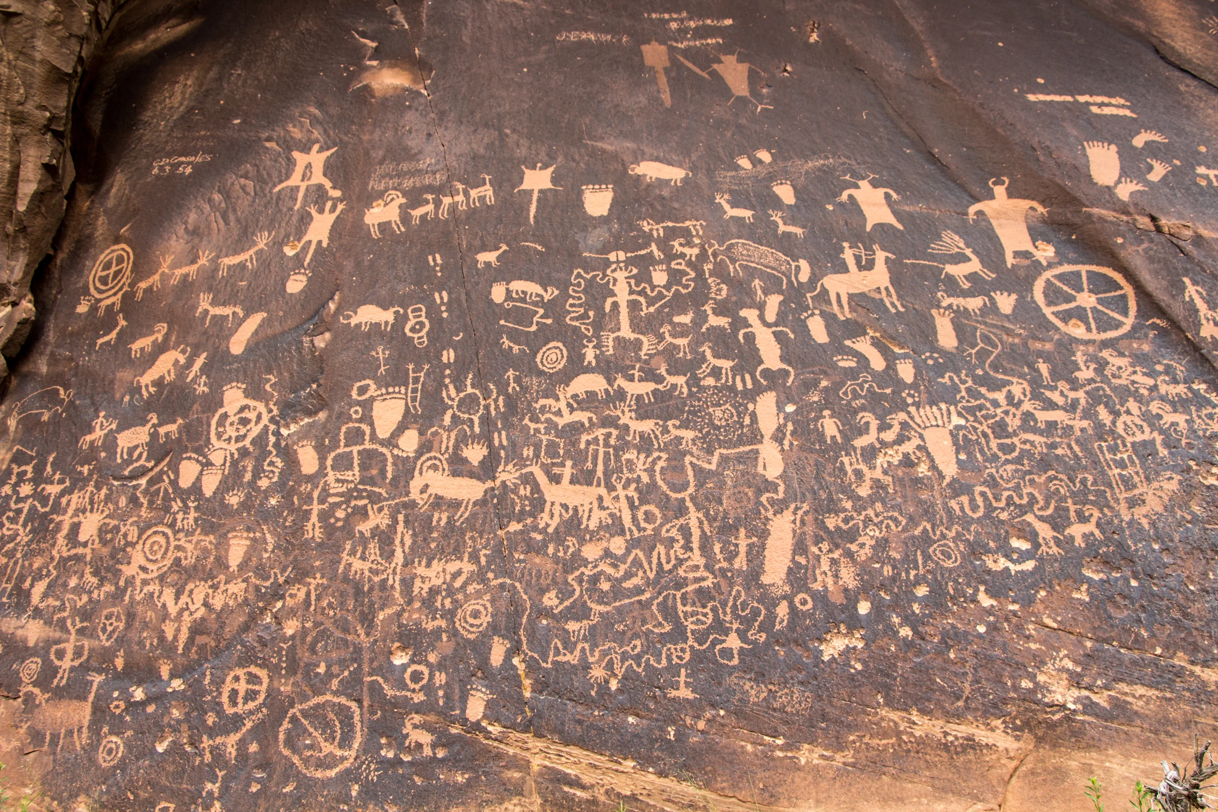 The Valley of the Gods: sacred power resonates in this place, with astounding beauty guarded by countless generations. It is our turn. These lands are in Bears Ears, which is under attack though an illegal presidential proclamation that violates the protections of its monument status, opening the door to toxic extractive industry such as uranium pit mines and coal strip mines. Over 100,000 Native American archeological and cultural sites are here, including the petroglyphs at Newspaper Rock in these photos.